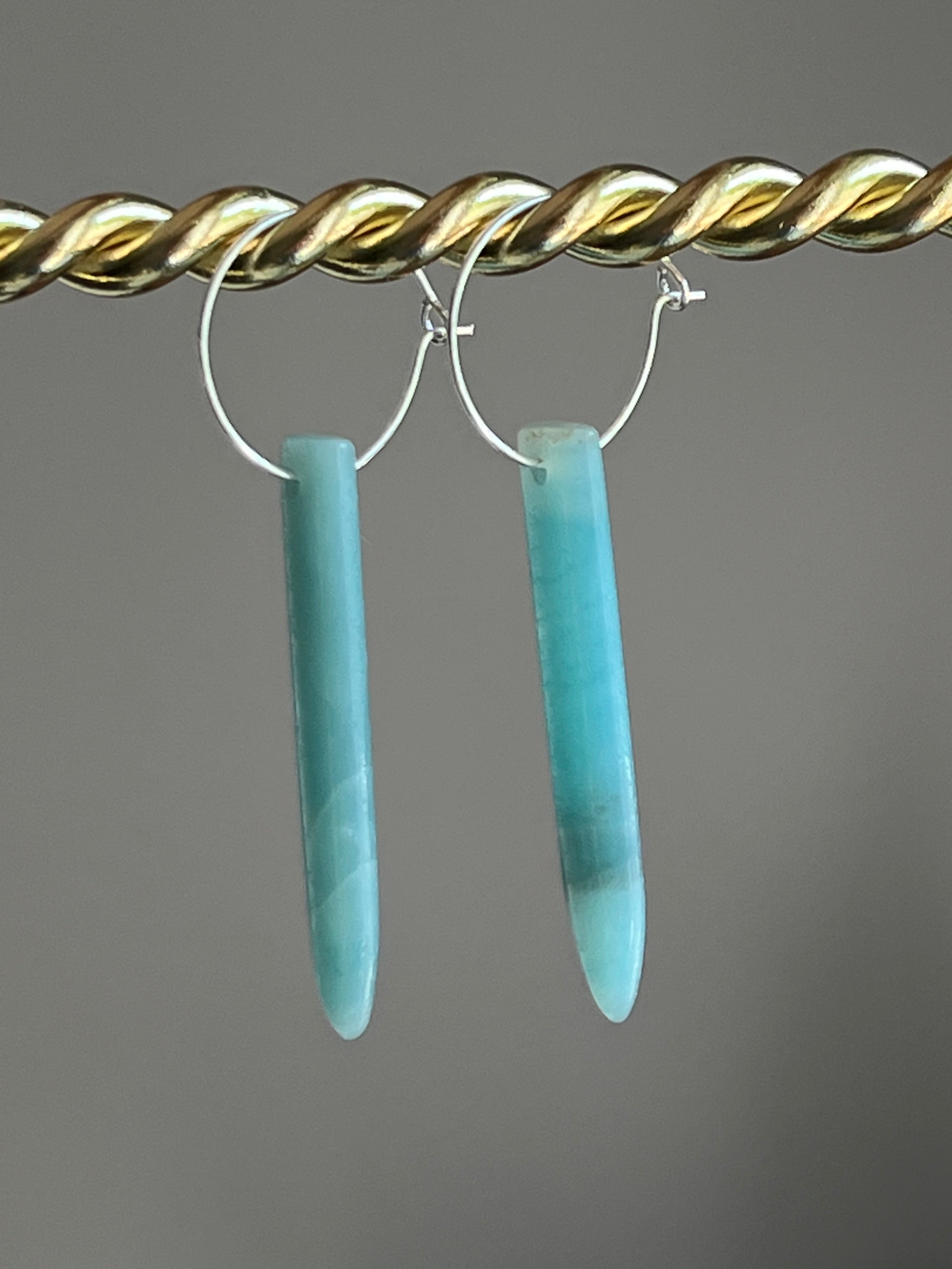 Amazonite Puff Dagger Gemstone Earrings | Silver-plated Wire | .5” Hoop