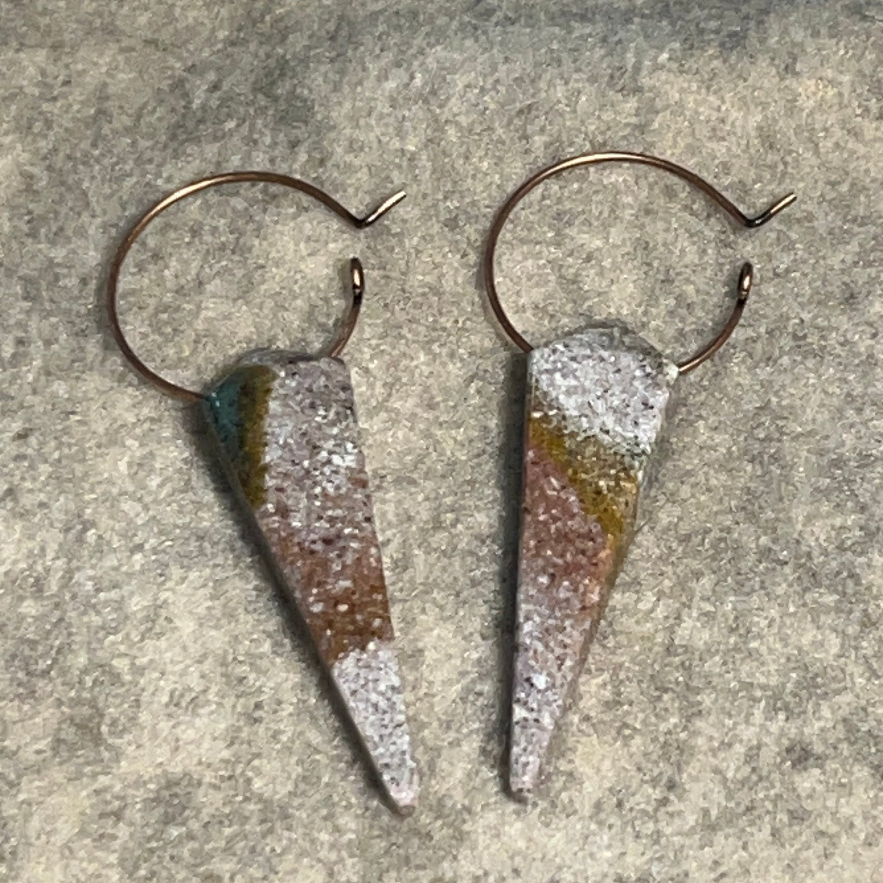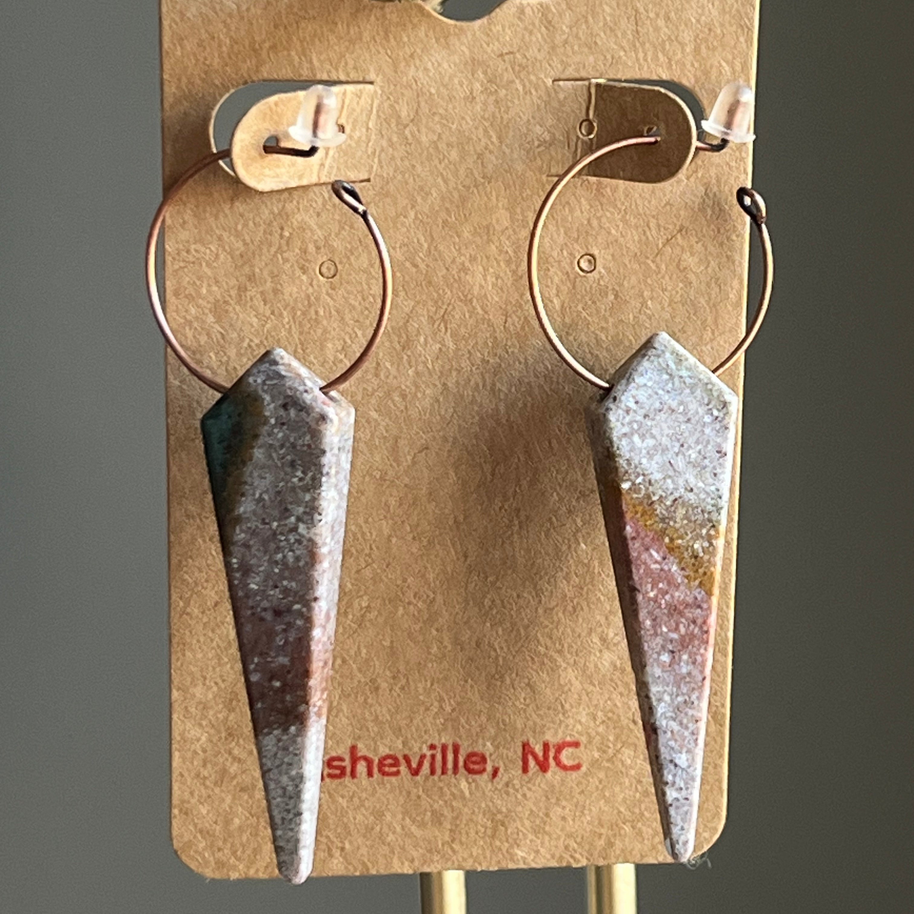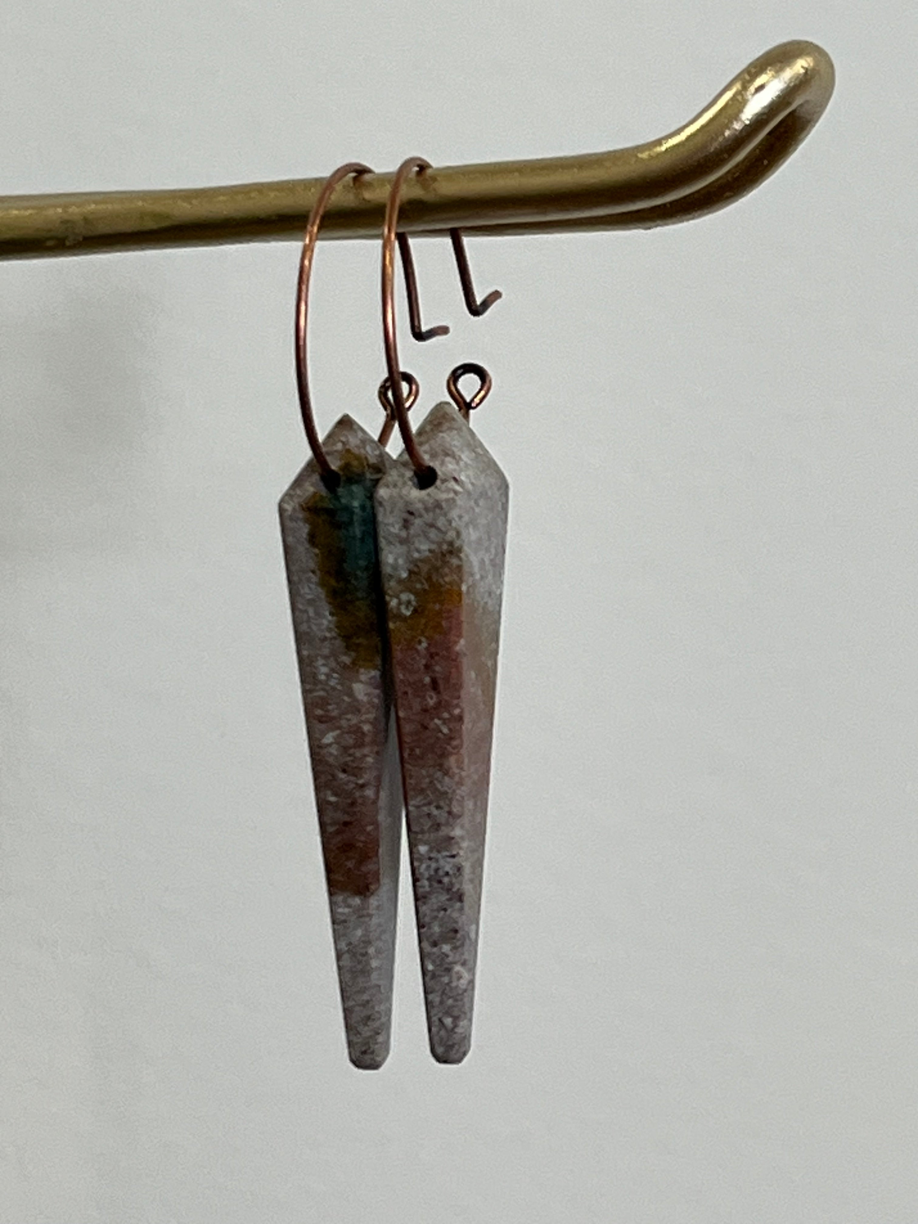 Sandy Ocean Jasper Kite Gemstone Earrings | Copper-plated Wire | .5” Hoop