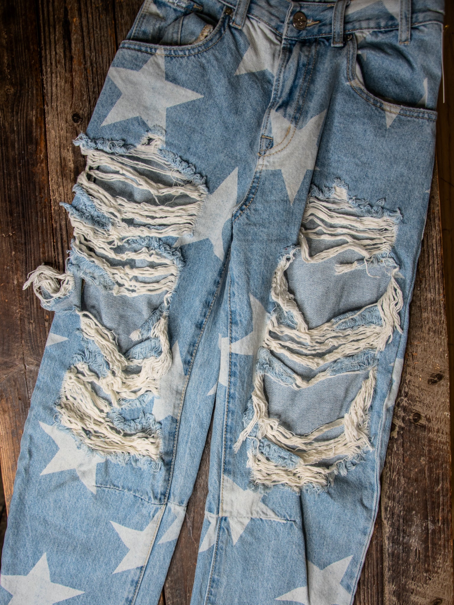 Distressed Upcycled Denim * 24 waist * Distressed Leather Stars