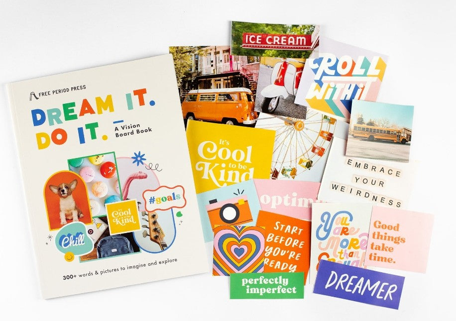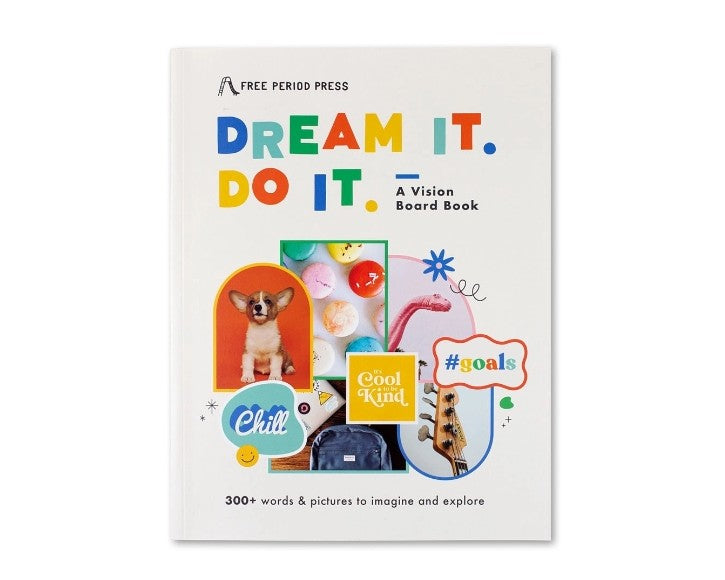 Help the young people in your life explore who they are and who they want to be with Dream It. Do It. A Vision Board Book. Creating a vision board is a great way to explore and display how you want to show up in the world. Dream It. Do It. makes it easier than ever by providing over 300 inspiring words and pictures covering topics like hobbies, food, pets, and everything in between. Cut them out and arrange them to create a vision board that is uniquely YOU. Dream It. Do It. makes a great gift for the kids and teenage movers and shakers in your life.
