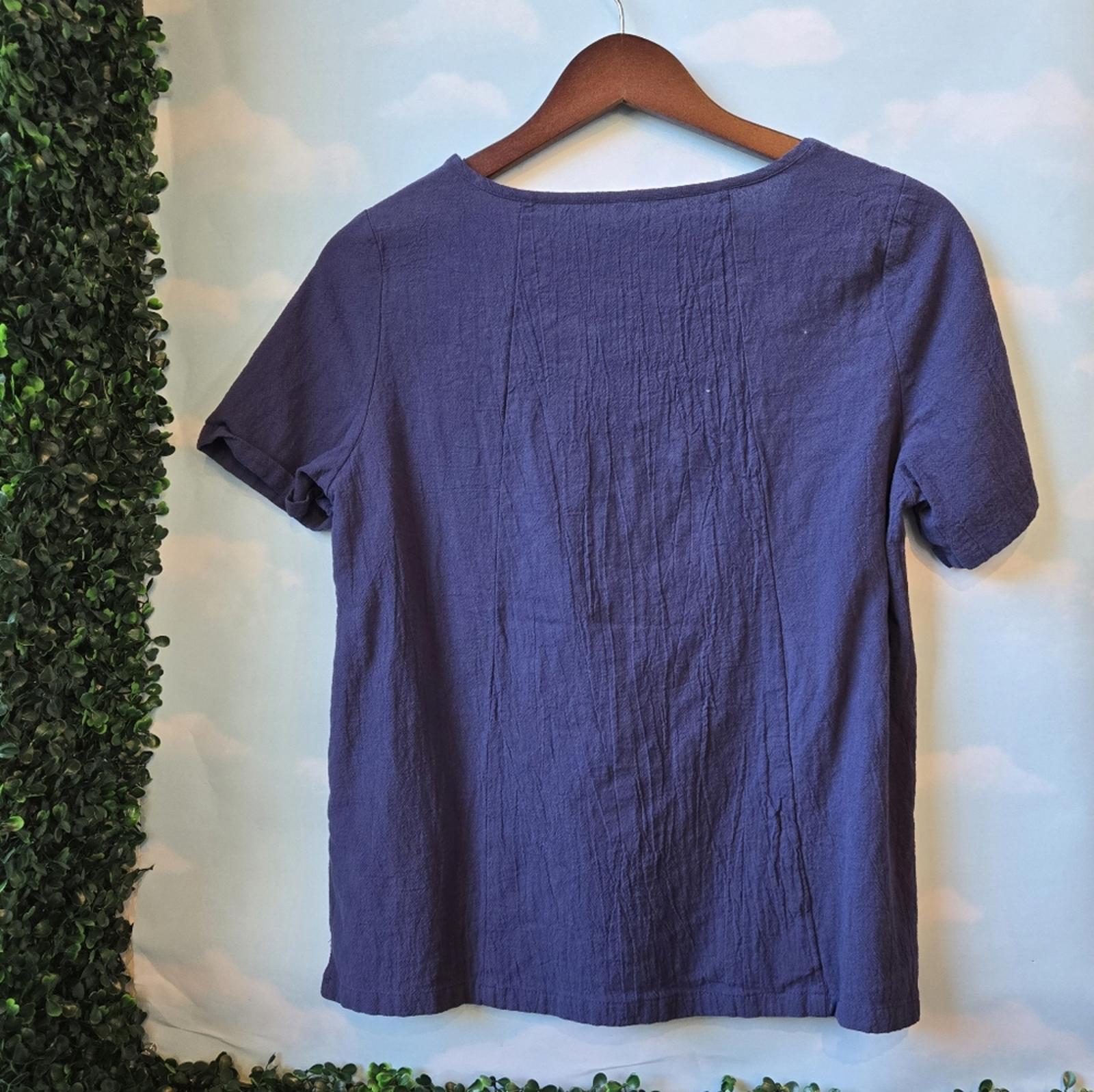 Discover elegance with this navy blouse featuring stylish button accents. Perfect for any occasion, it combines comfort with a chic design.
