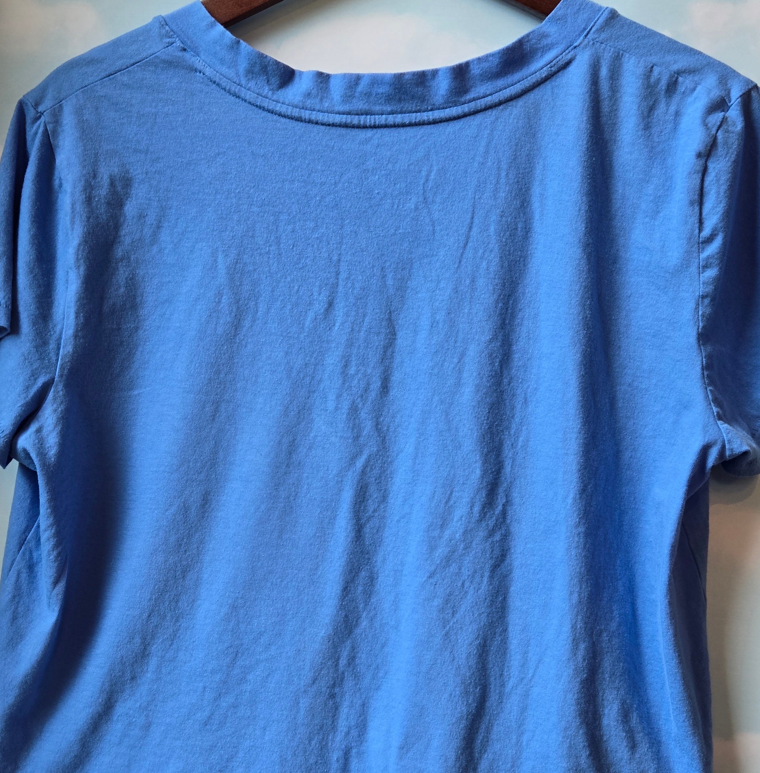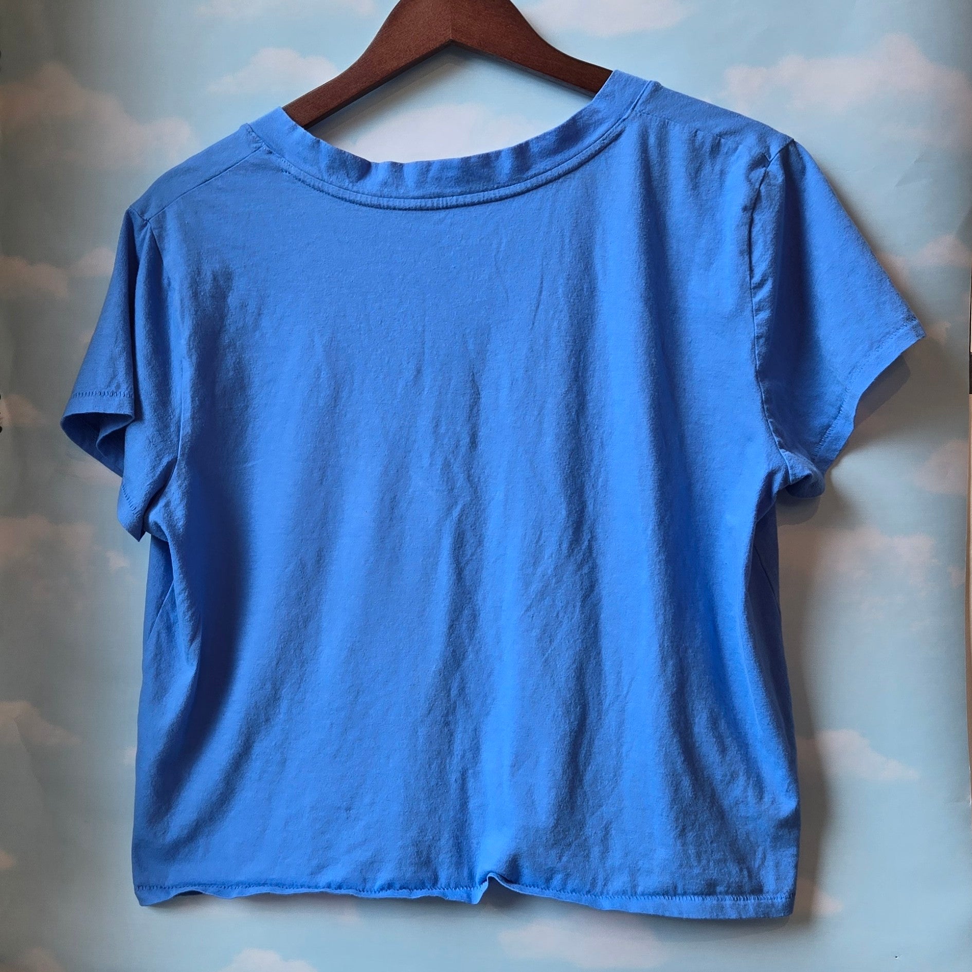 Upcycled Blue neck boxy crop Tshirt, Size xlarge