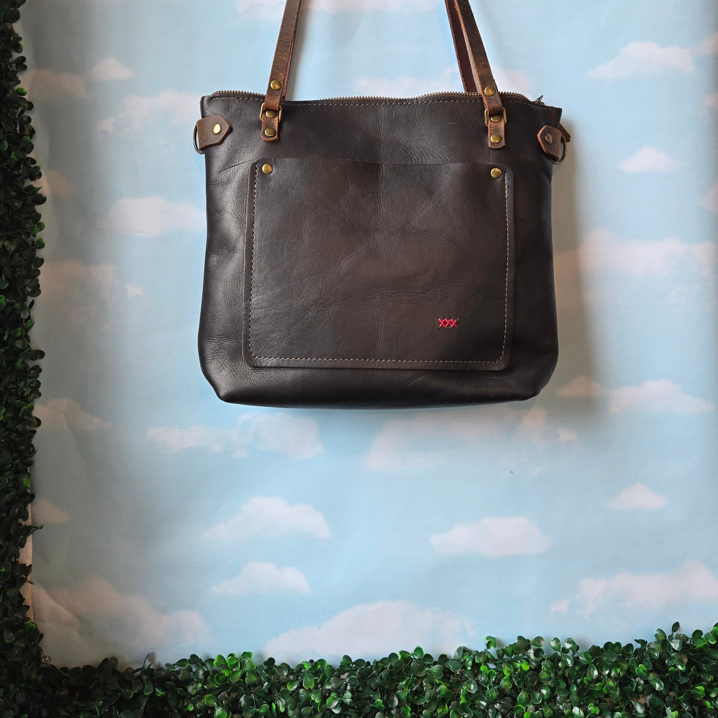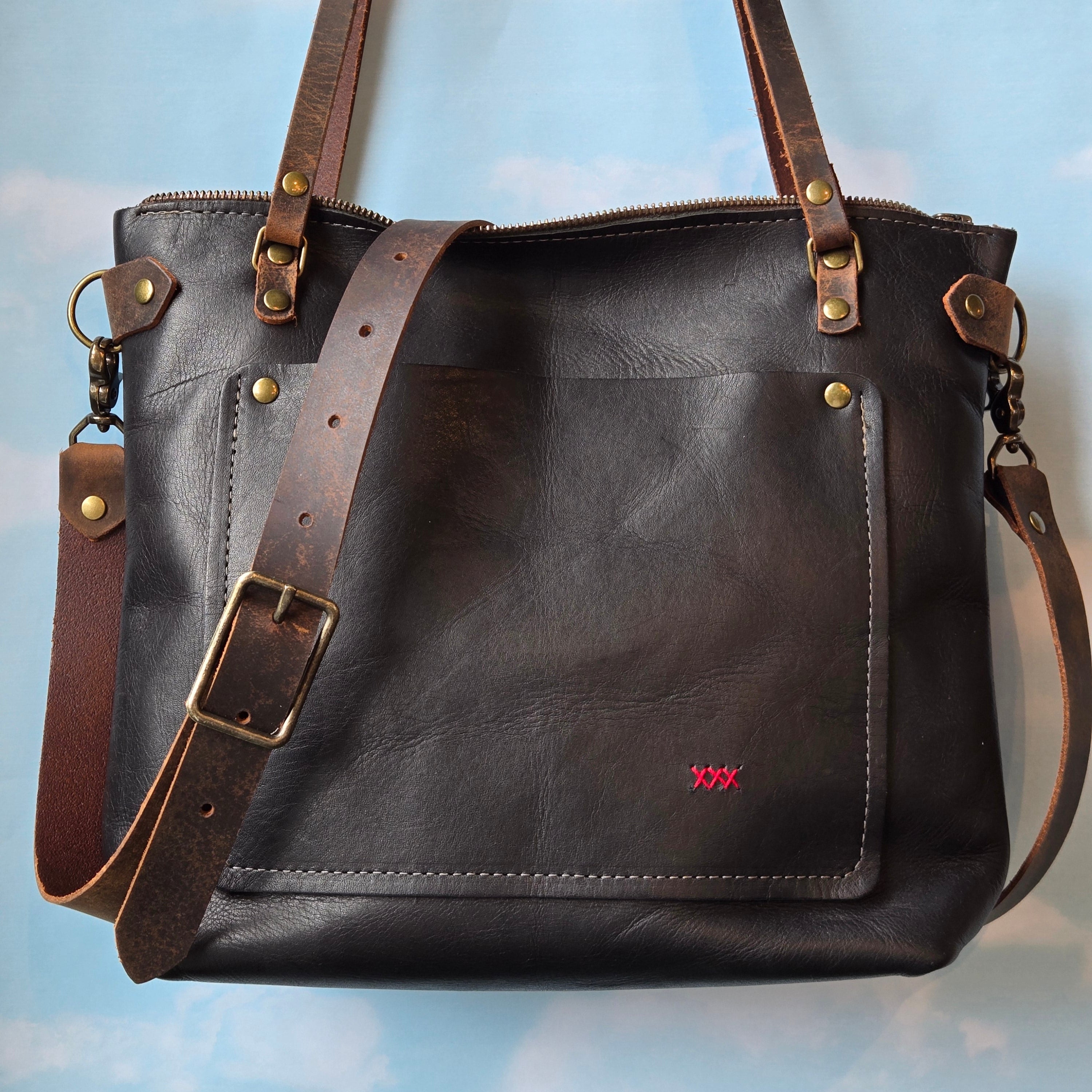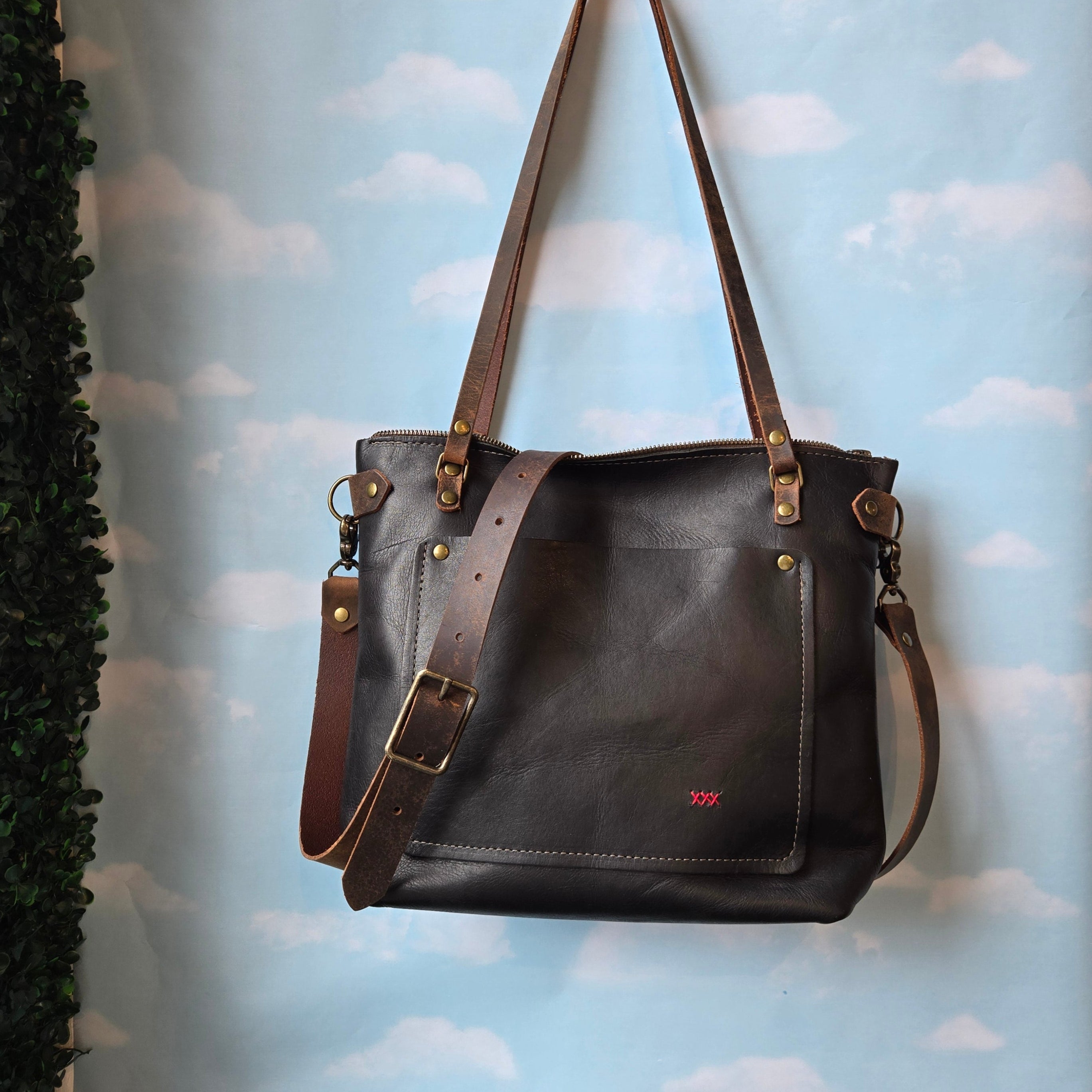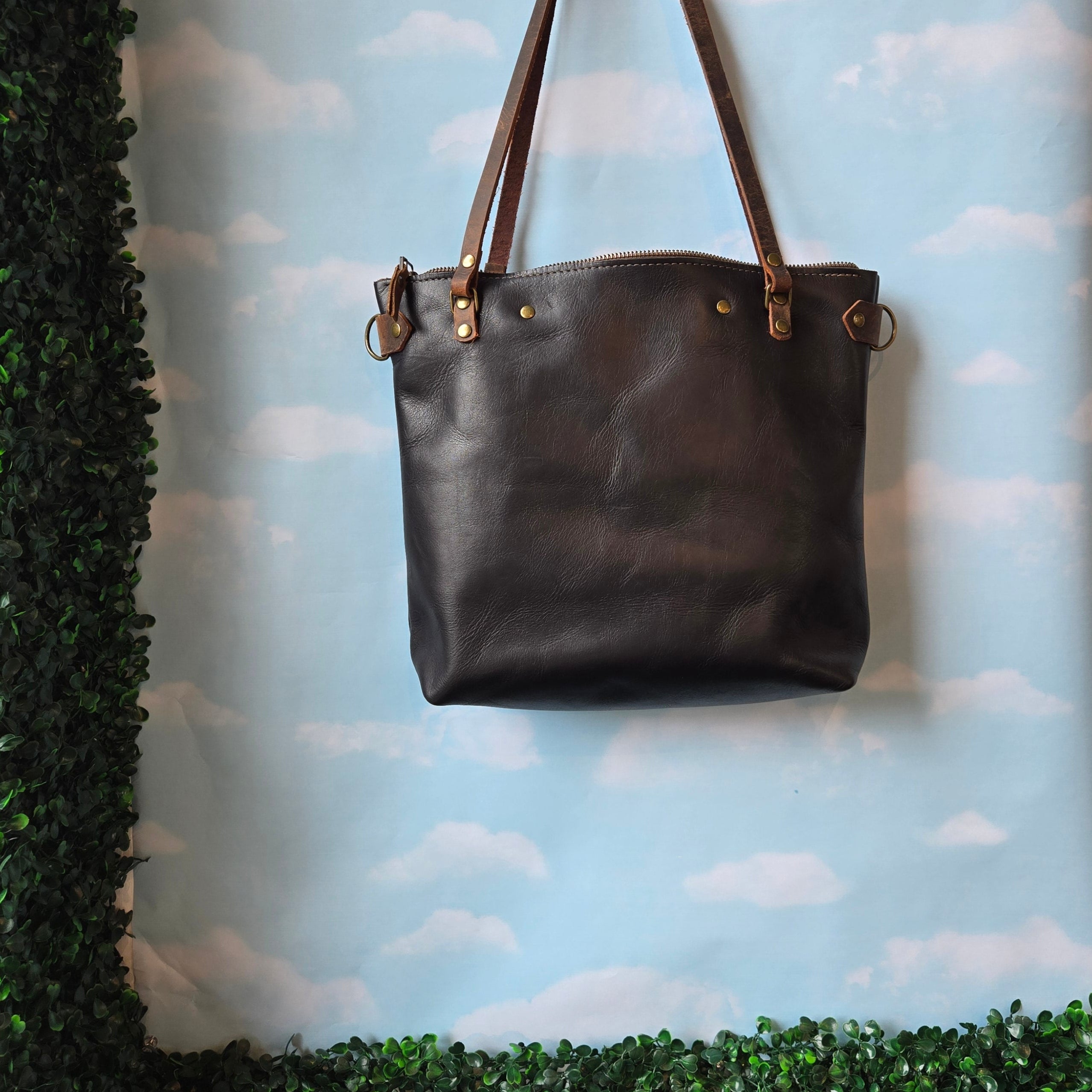 Handmade Classic Leather Tote Bag * Small Black * Shoulder Straps + Crossbody