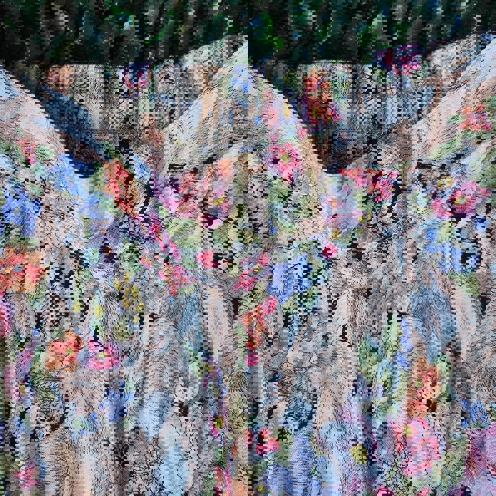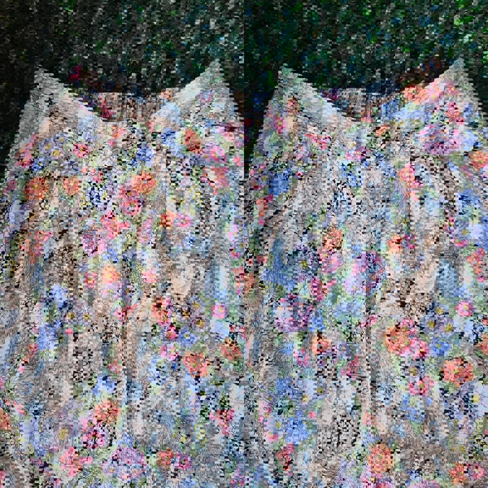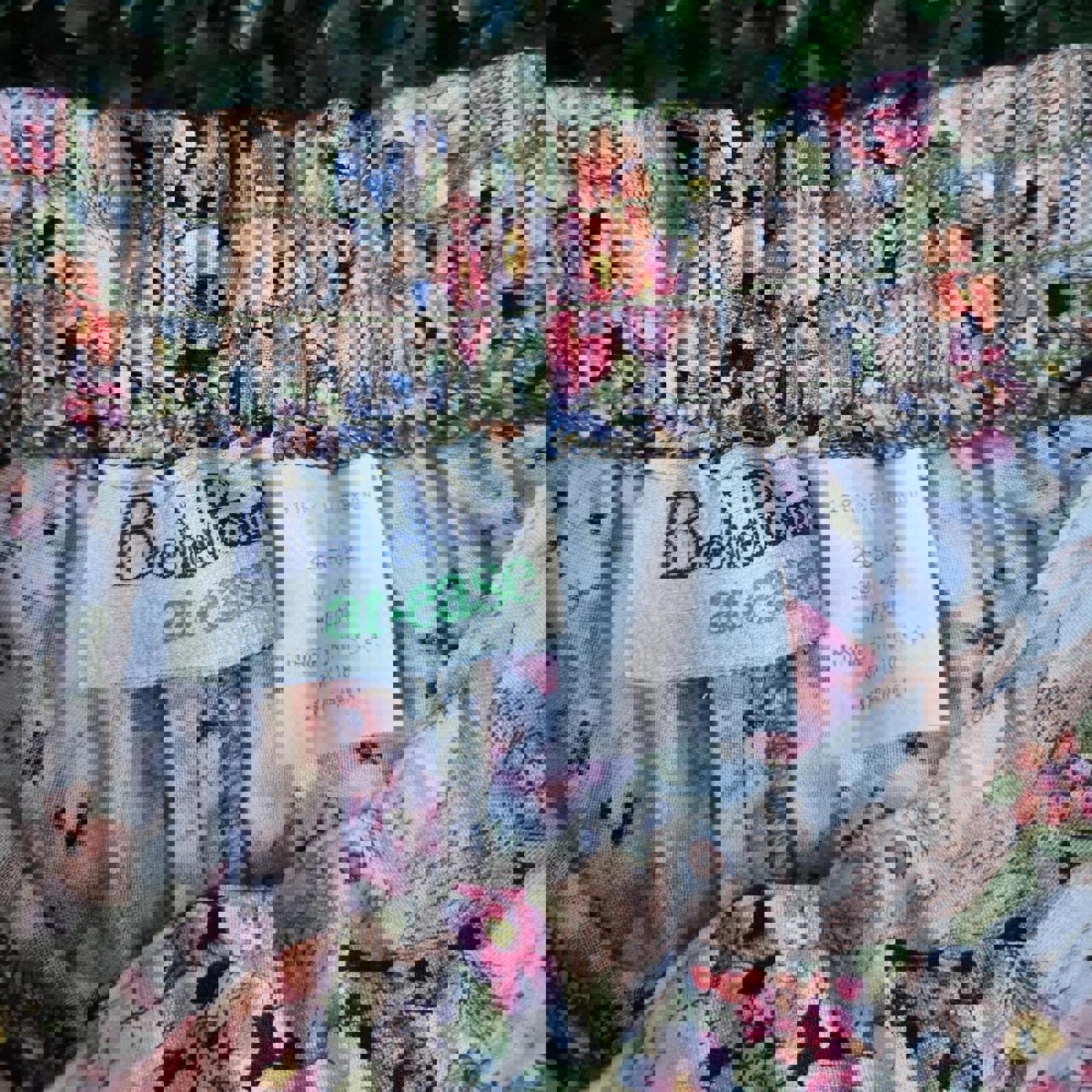 floral vest, bunny design, paper bag shorts, black trim, button front, cottagecore aesthetic, vintage-inspired, pastel pattern, embroidered details, romantic style