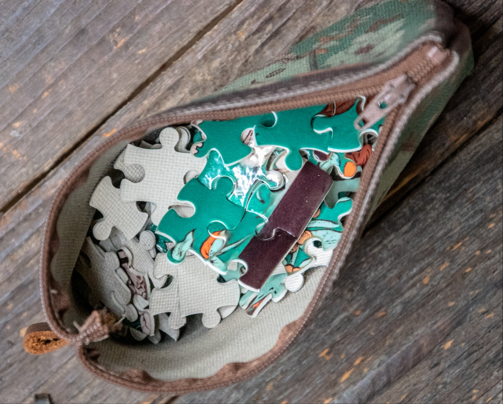 Puzzle pieces come inside pouch! Move them to your own bag and use the pouch for everything or keep it all together, choose your own adventure!