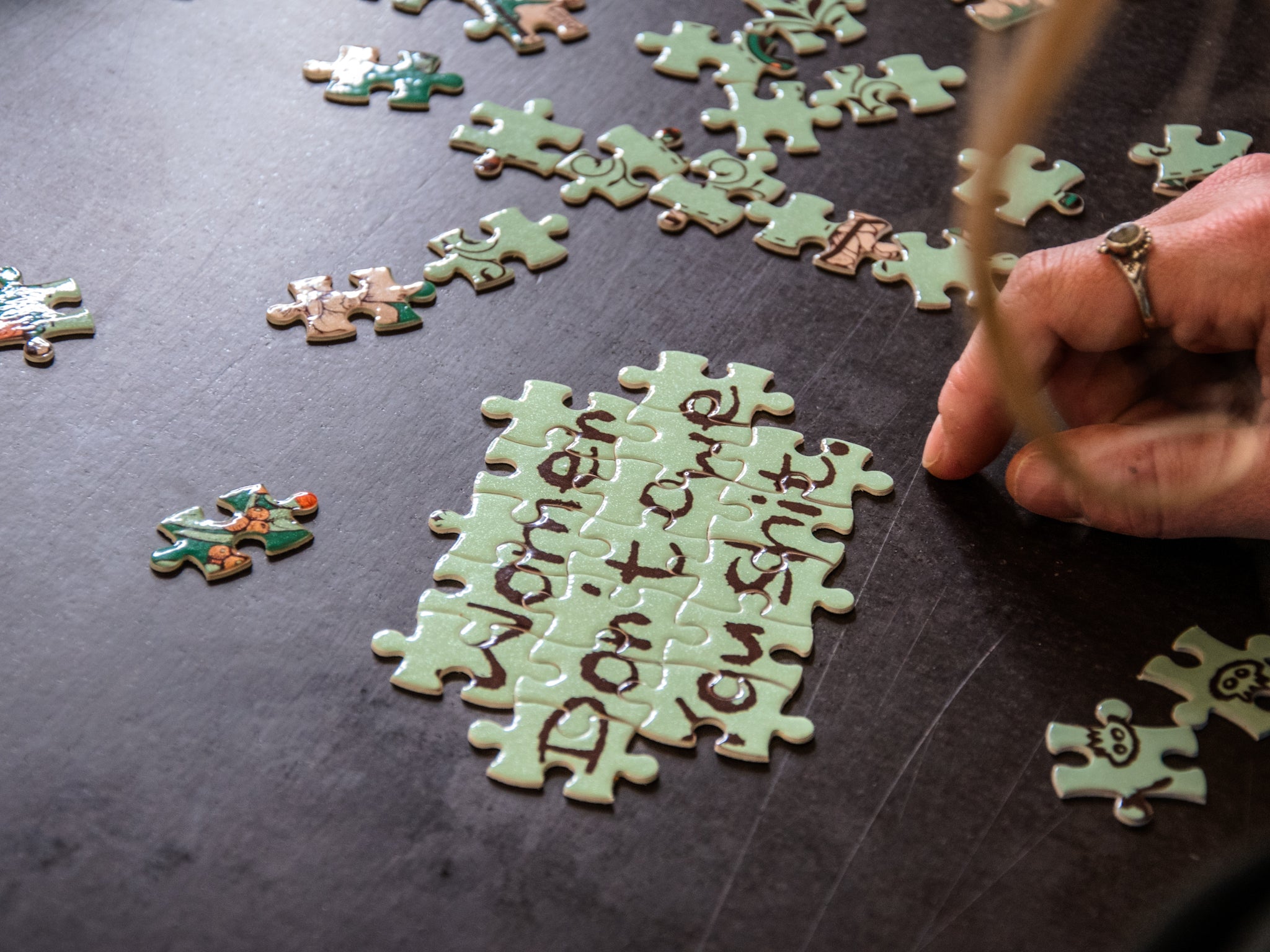 Y'all. Our handprinted puzzles are everything. These small projects are amazing opportunities to get off the grid, stop doomscrolling, and decompress. These take about an hour and come in a matching handprinted, handmade pouch (all done by Camp Blue!)