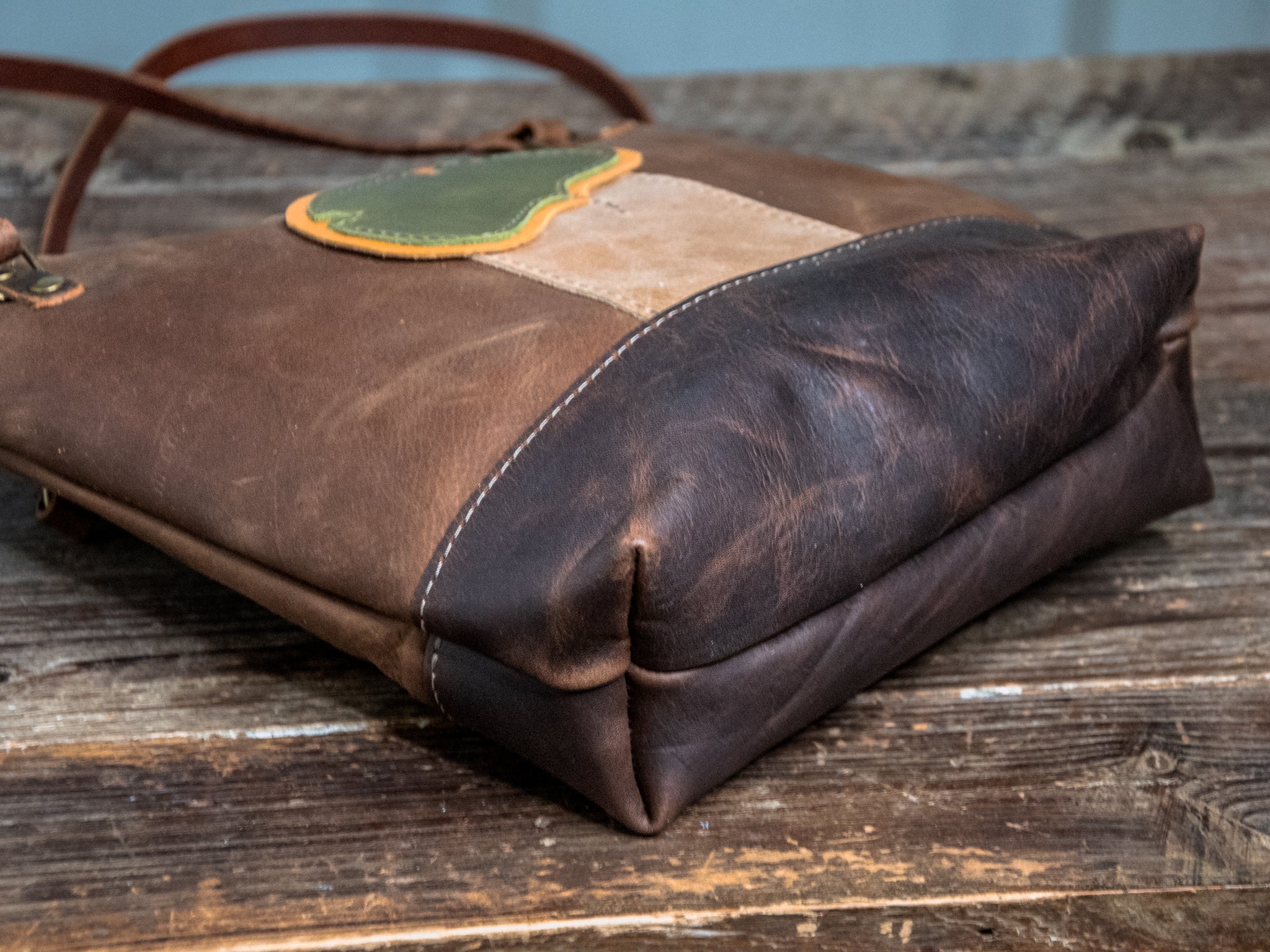Classic, simple, sourced right here in the USA. Handcrafted in a small studio in Asheville, NC, this bag will keep going for years and will age beautifully with your adventures.