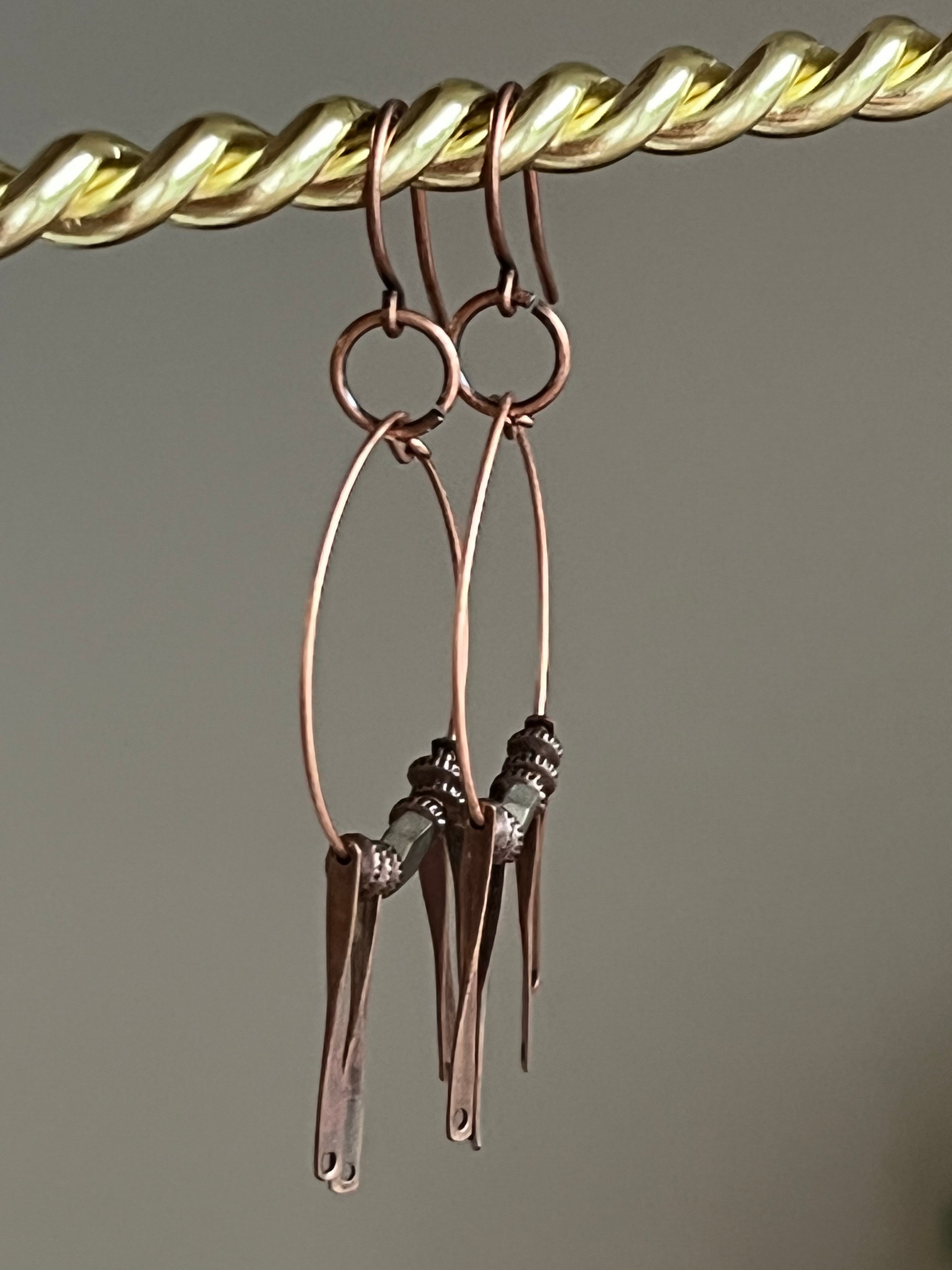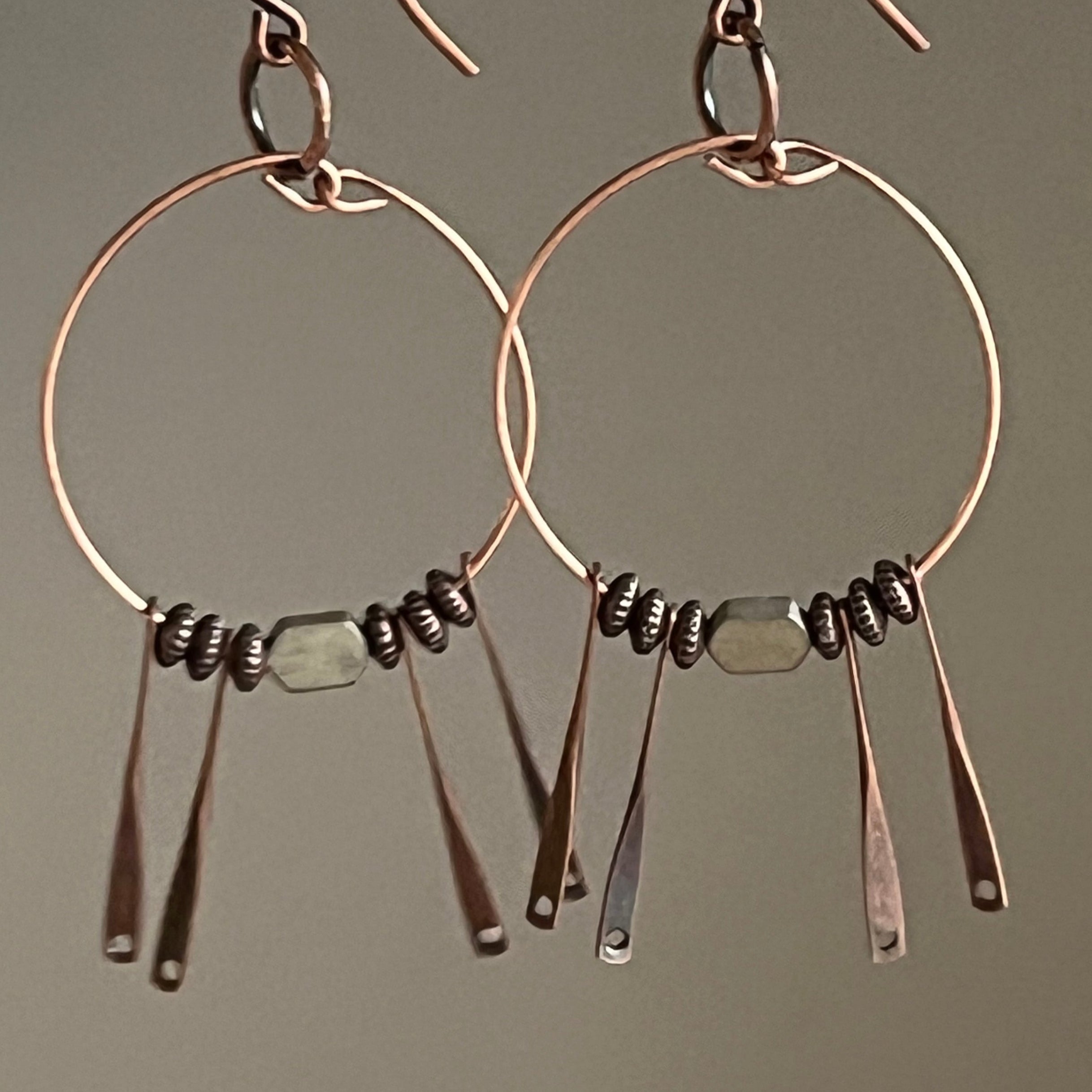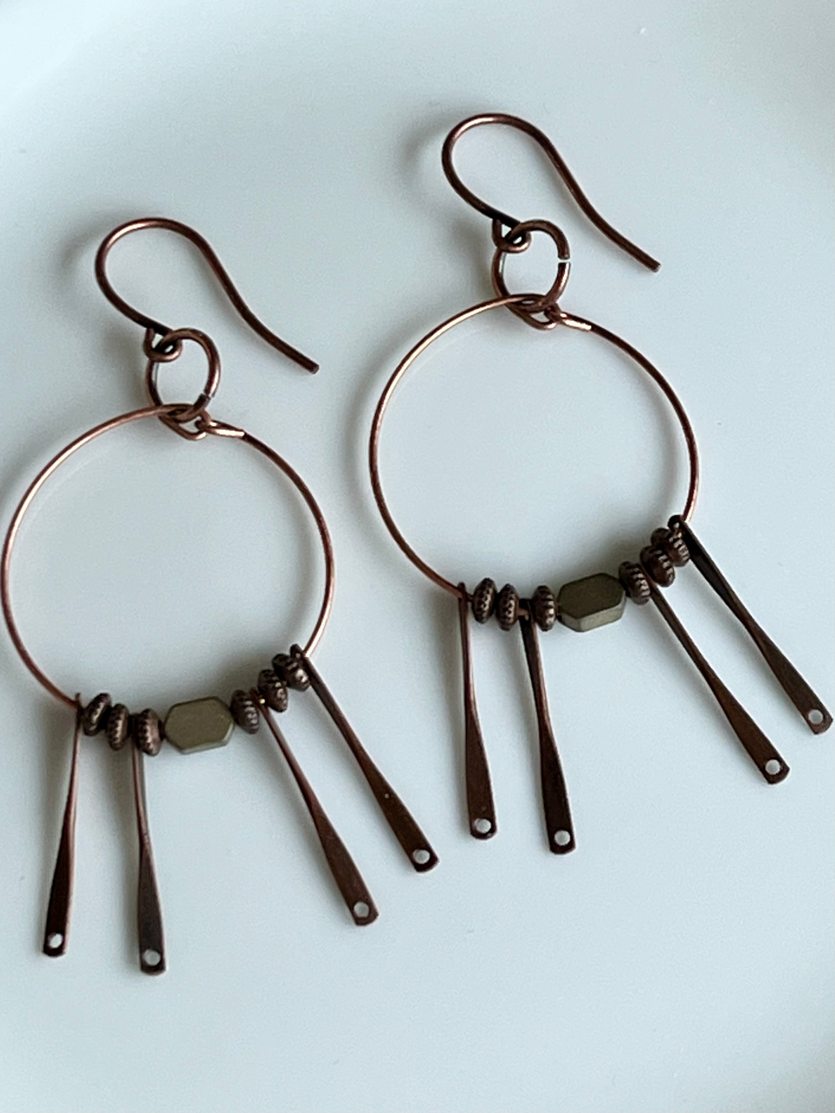 Hematite w/ Bronze + Copper Metal Findings Earrings | Copper-plated Wire | 1” Hoop | Dangle