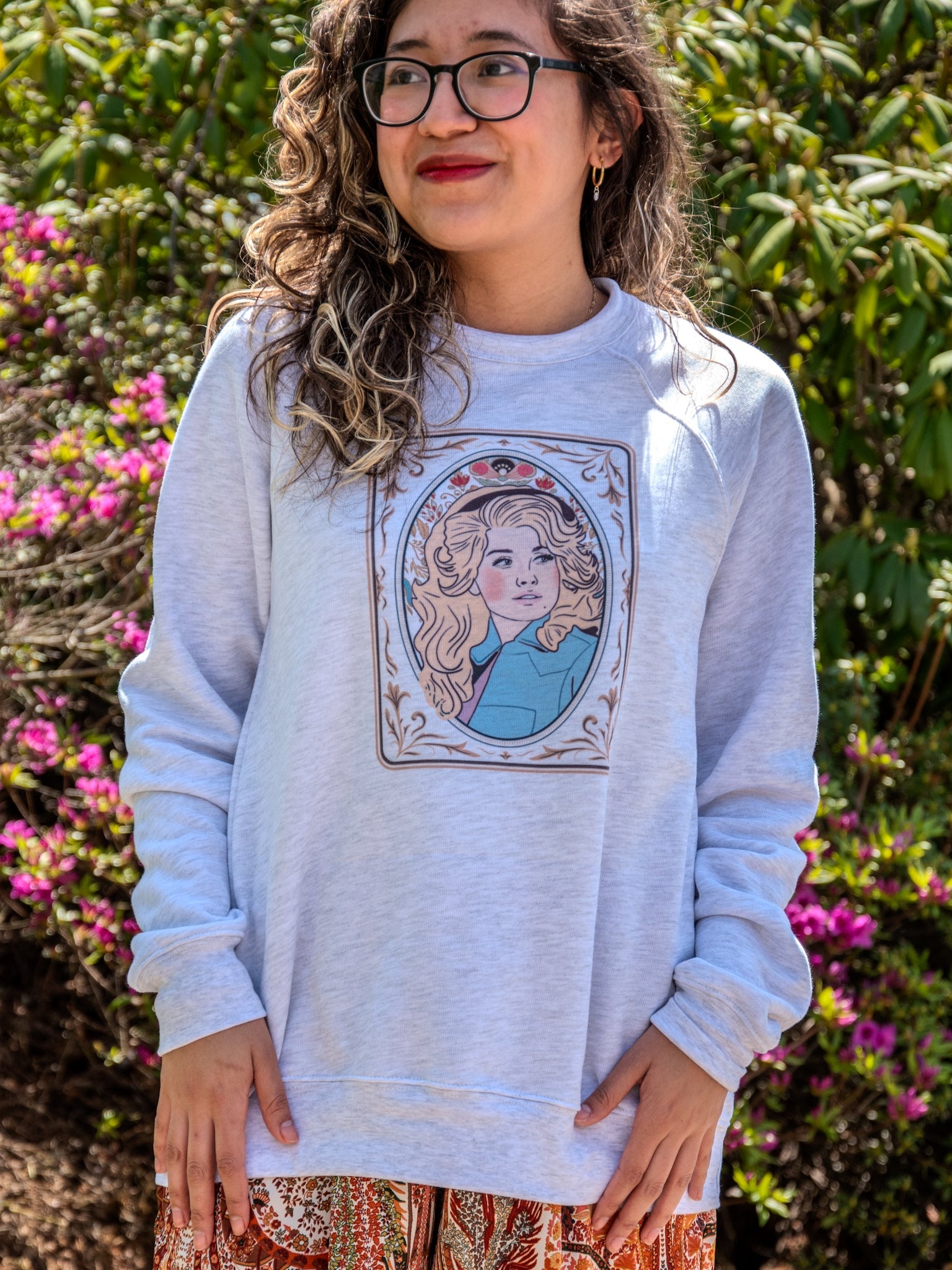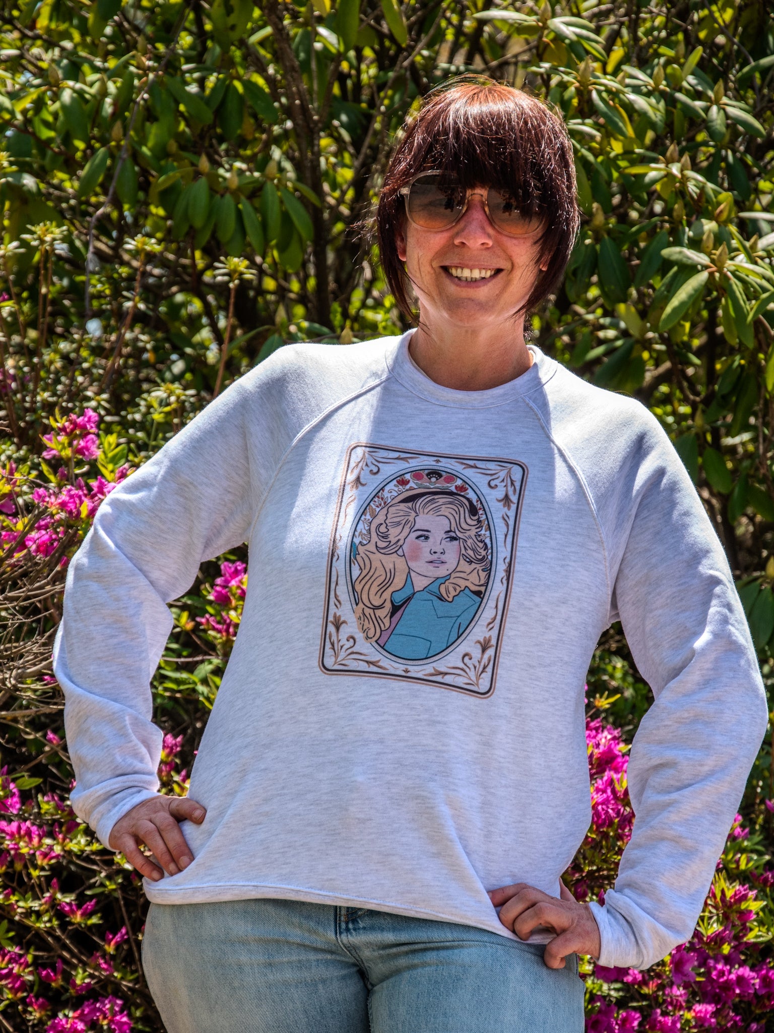 This sweatshirt is warm enough for winter, and made for summer nights! Show the people who is boss with your new, original artwork Dolly fleece sweatshirt.