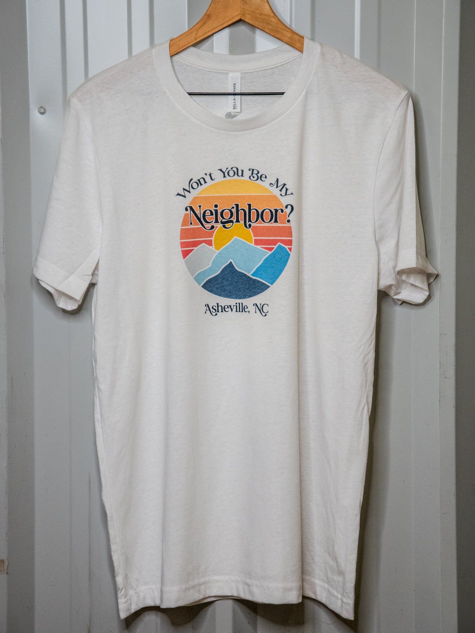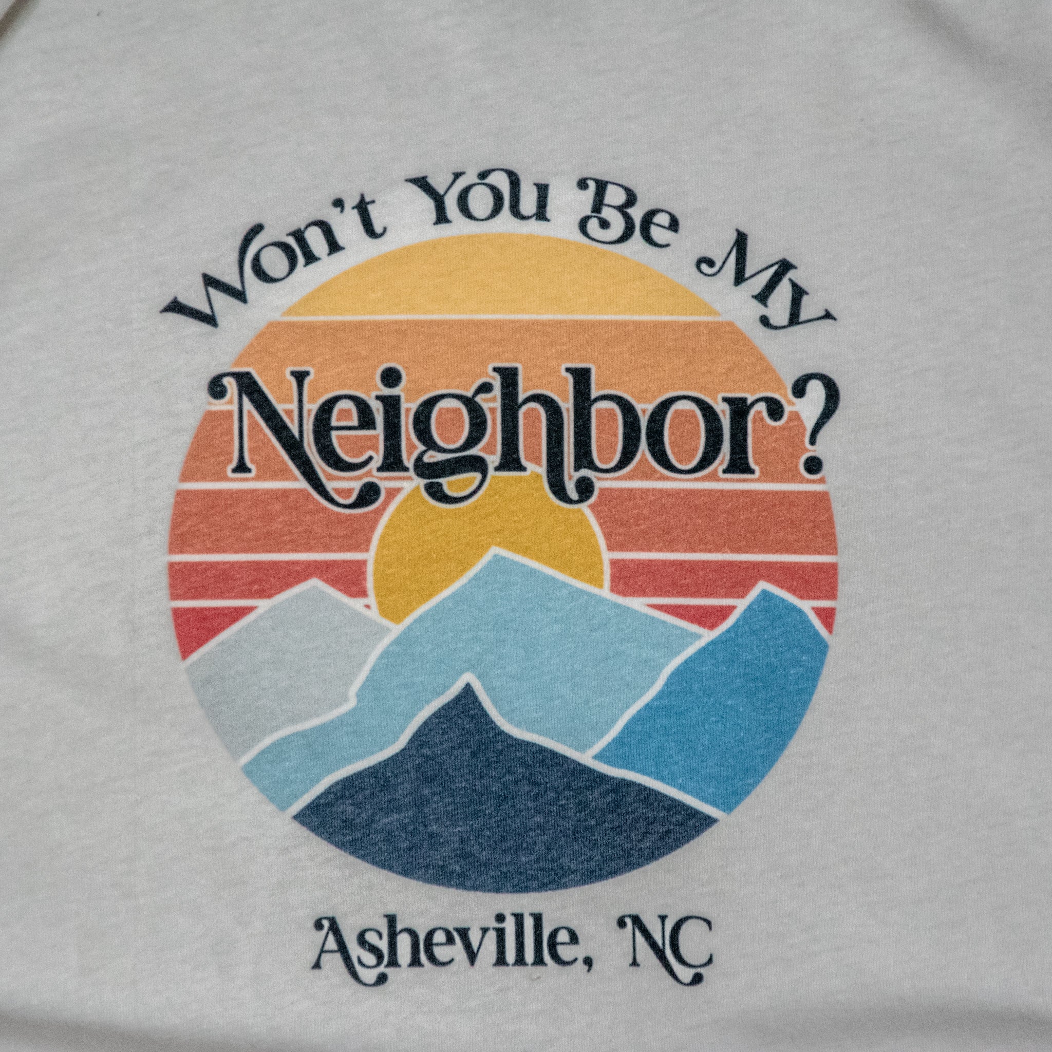 Handprinted vintage feel shirt, made with LOVE by our Camp Blue crew here in Asheville!