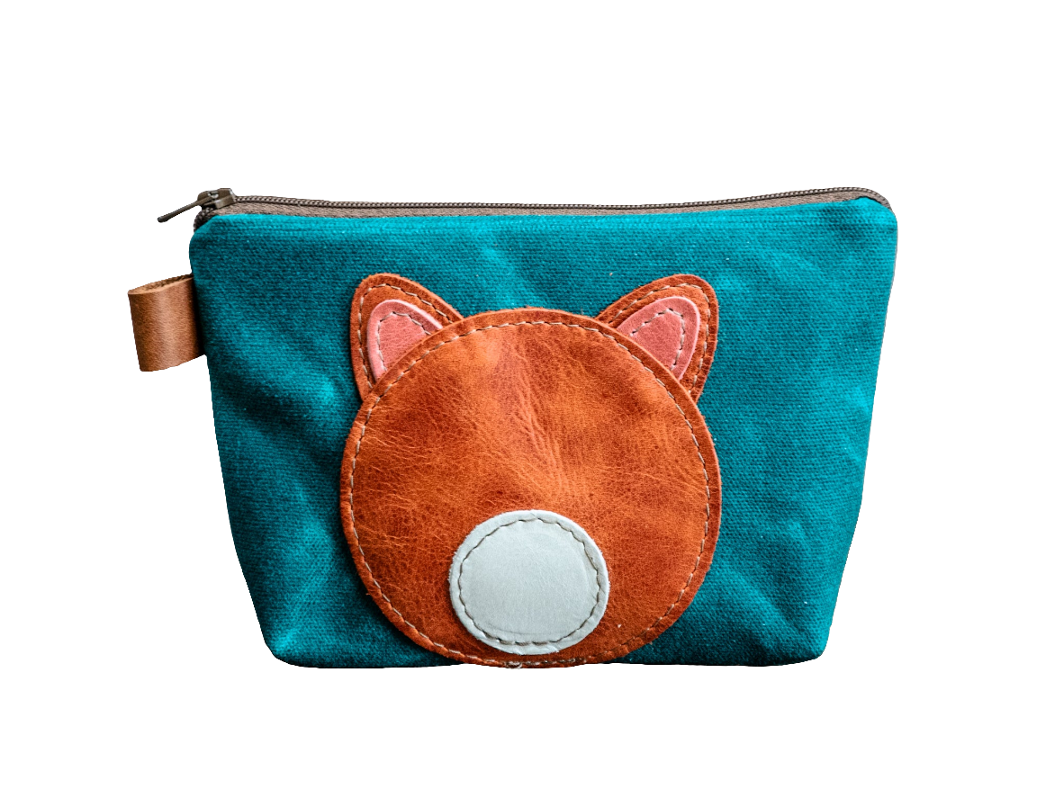 Waxed Canvas Zipper Pouch Teal Aqua * Orange Kitty Cat