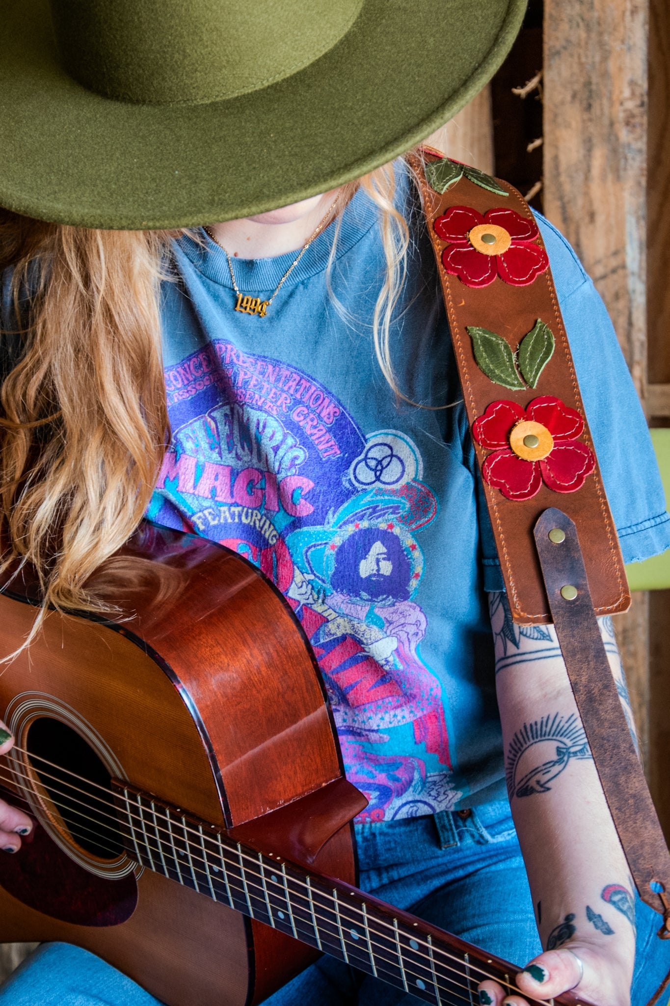 In Blue Handmade outfits many musicians, and we have been studying the use of our straps on tour for years. We are proud to bring these to our retail lineup of handmade, sustainable leather goods! Our straps have graced the headlining stages of many festivals (including Newport Folk Fest, Bonnaroo, SXSW, and many more), late-night tv shows (Letterman, Saturday Night Live, and so many more) and oh-so-many tours.