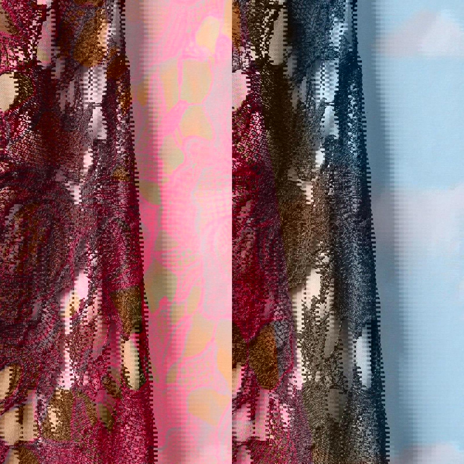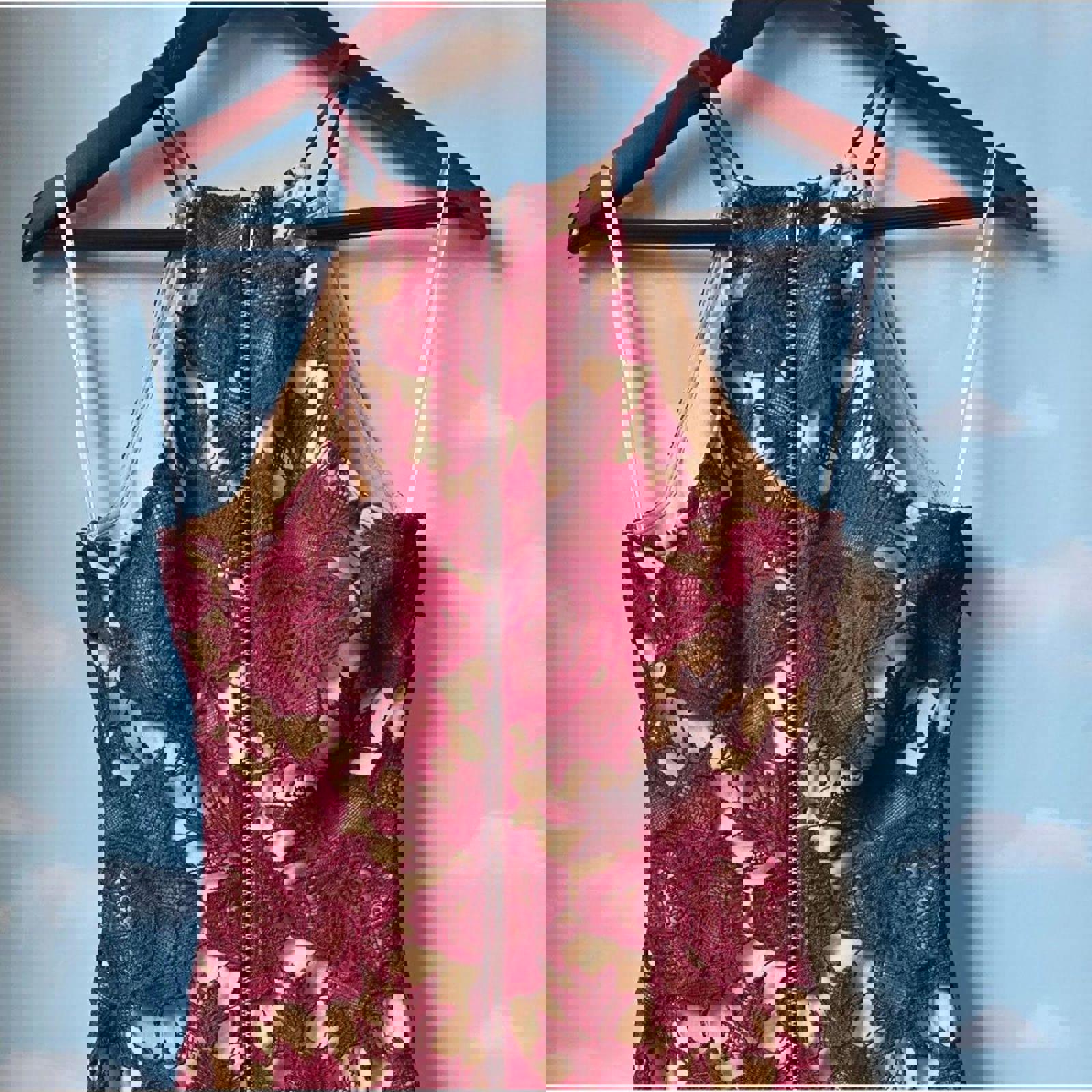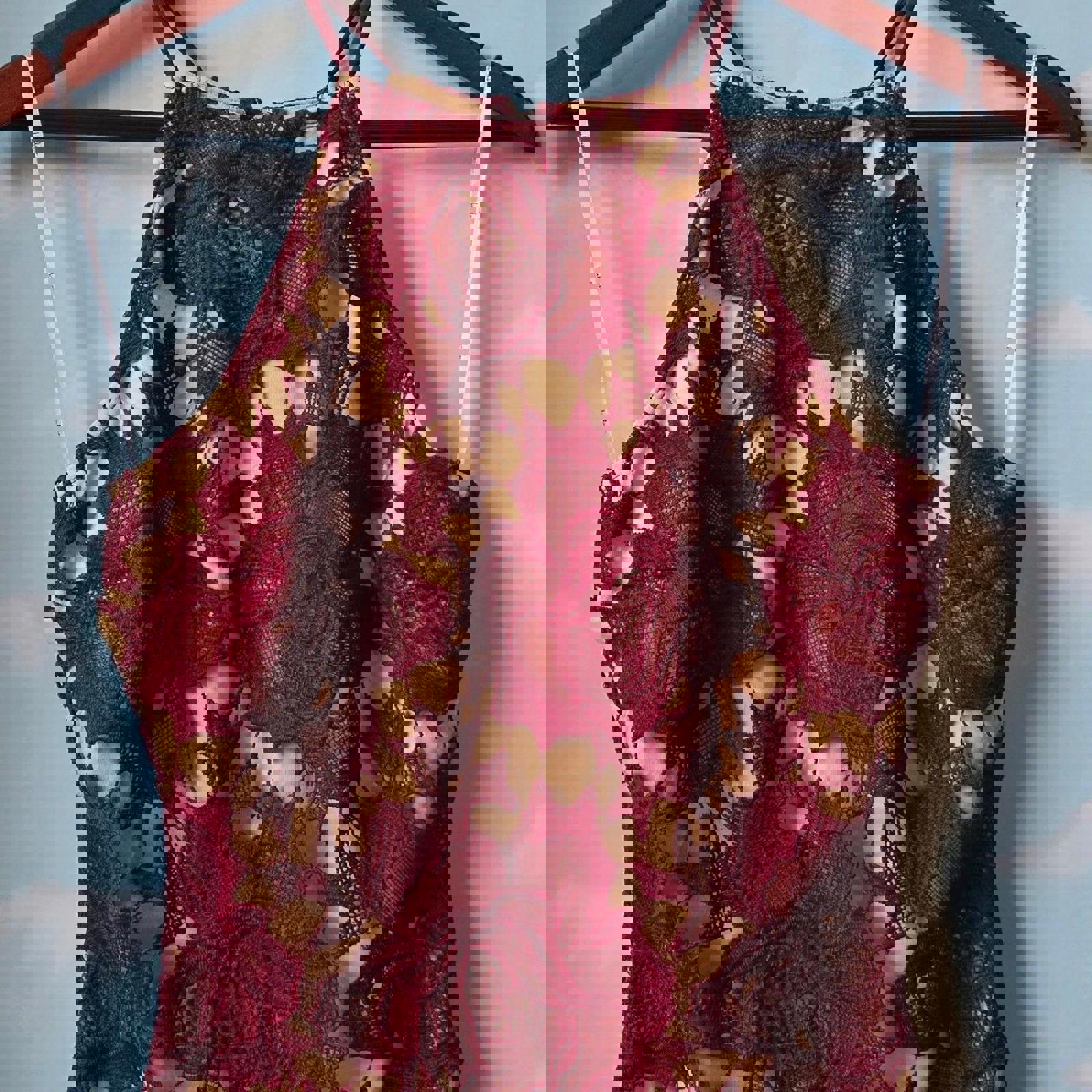 Extra Small Perfect condition LuLu's Maroon Floral crochet Lace Halter Dress with Metal Back zipper and nude slip. Perfect wedding guest or bridesmaid attire!