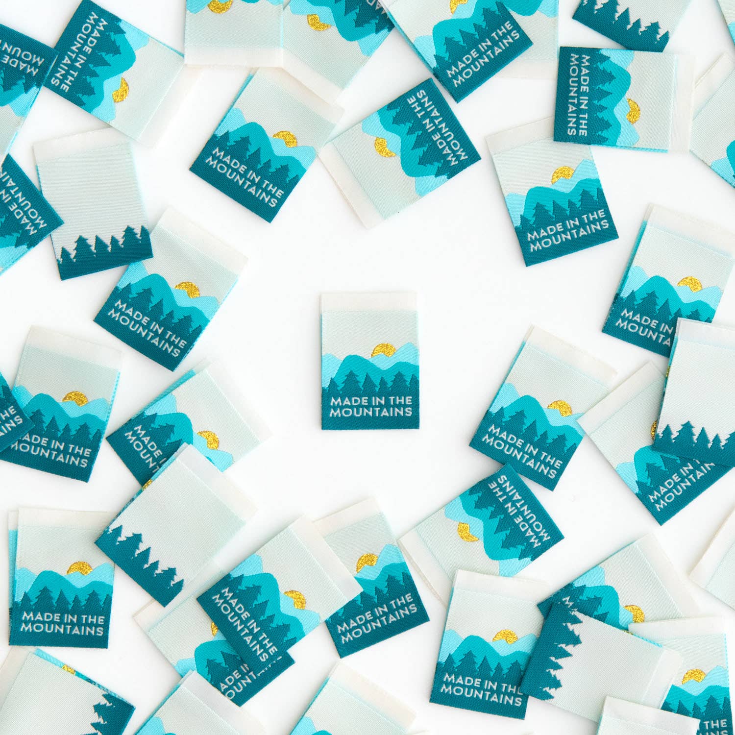 Are you creating up in the mountains? Finish all your handmade makes with these gorgeous woven labels. Each label features the text "made in the mountains," a jade green landscape and a small metallic gold sun. They are super soft to the touch and never scratchy. The labels are fully washable and can handle the heat of the dryer.