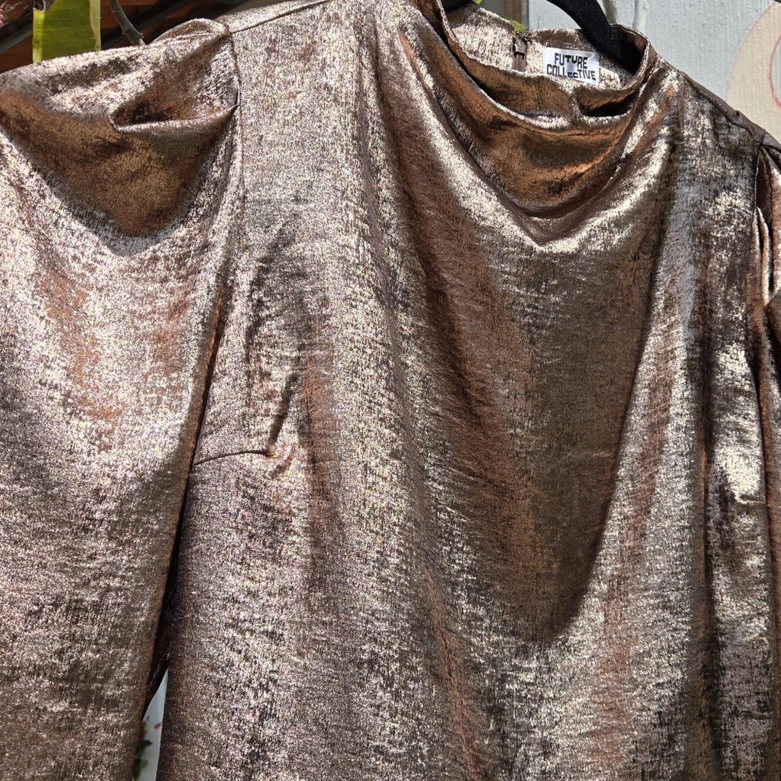 Shine in this stunning metallic bronze top. Perfect for any occasion, this top adds a touch of elegance to your wardrobe.
