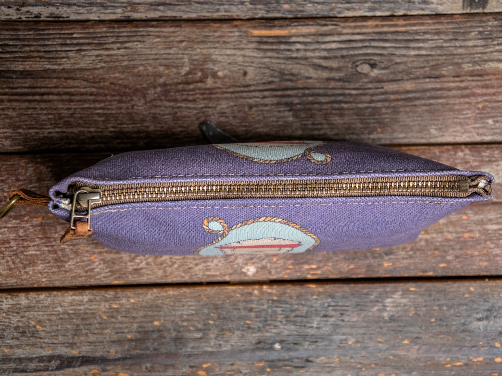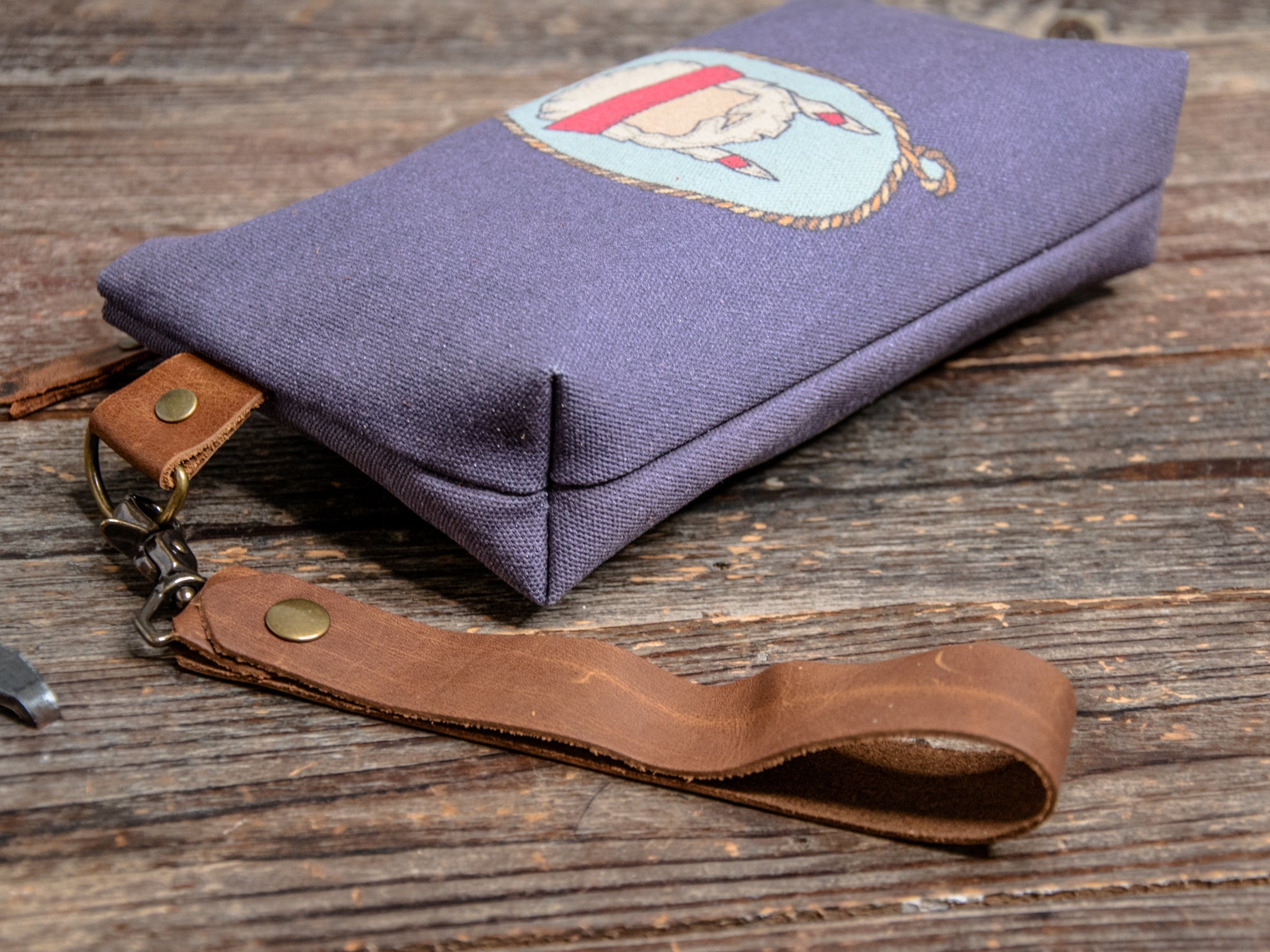 Want the perfect little zipper pouch to hold your cards and some cash? Need a place to store those guitar pics and earphones? Zipper color may vary, but will remain neutral with our awesome canvas colors. Leather side pull is perfect to clip to your favorite bag or keychain!