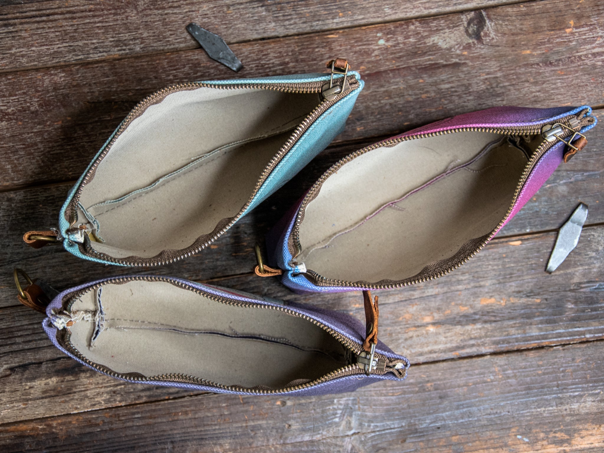 American-made canvas pouches that can ALSO BE HAND PRINTED. Releasing these slowly, but we really just cannot get enough