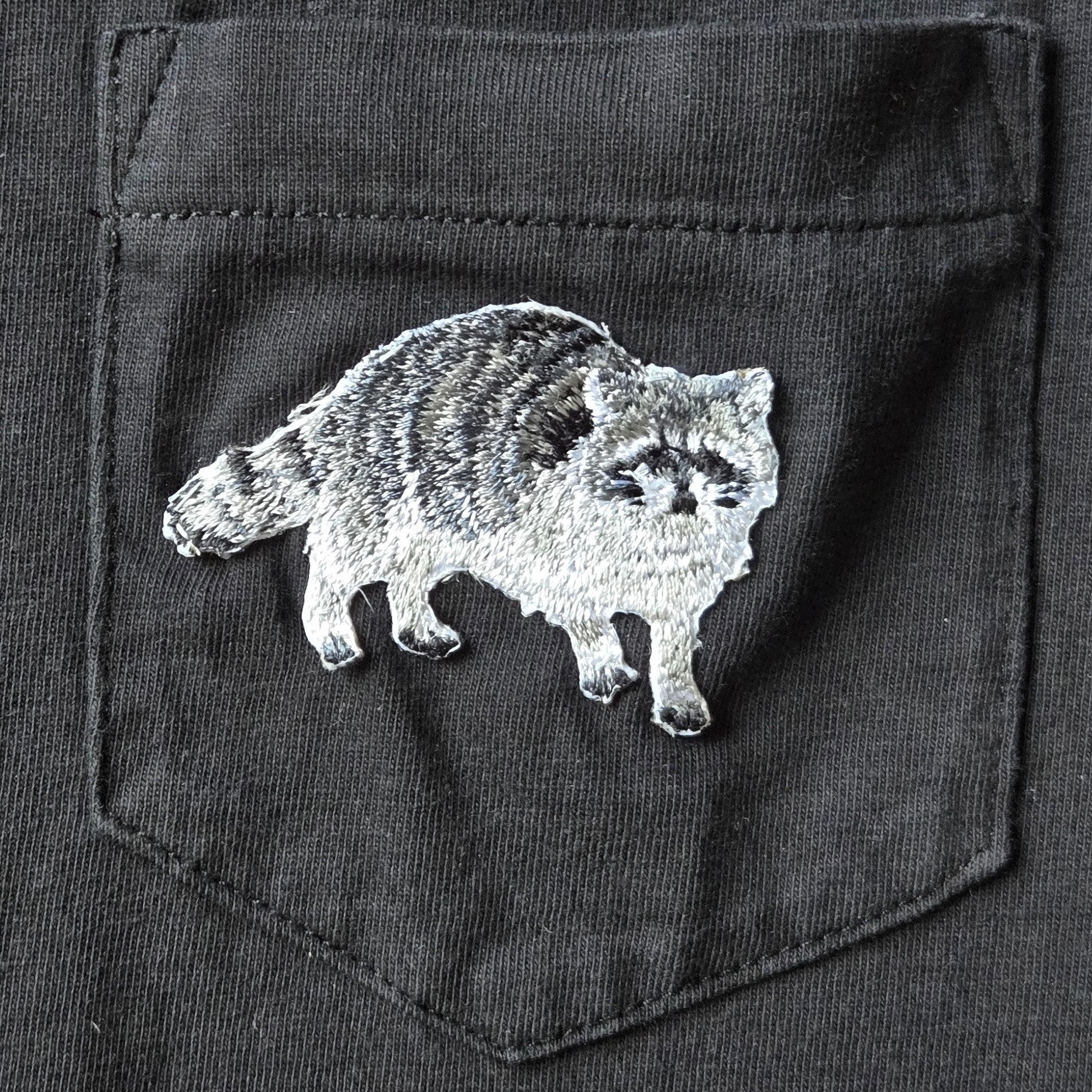 Racoon Pocket * Upcycled Tshirt Dress * Small * Raccoon Embroidered Patch