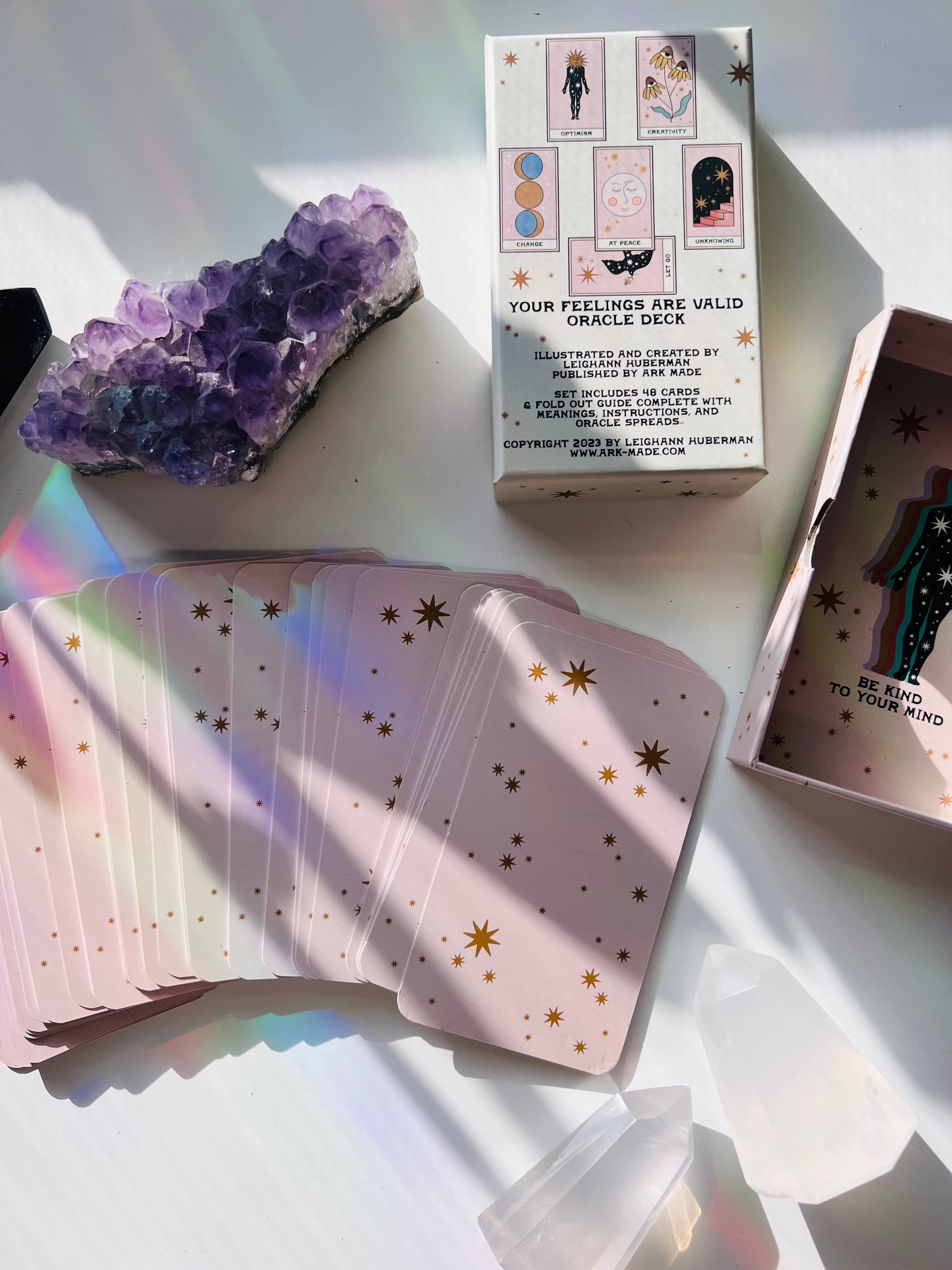 48 cards to help you navigate your feelings, this affirmation card deck beautifully illustrates different emotions we all feel. From joy to resentments to the need to slow down.